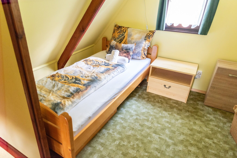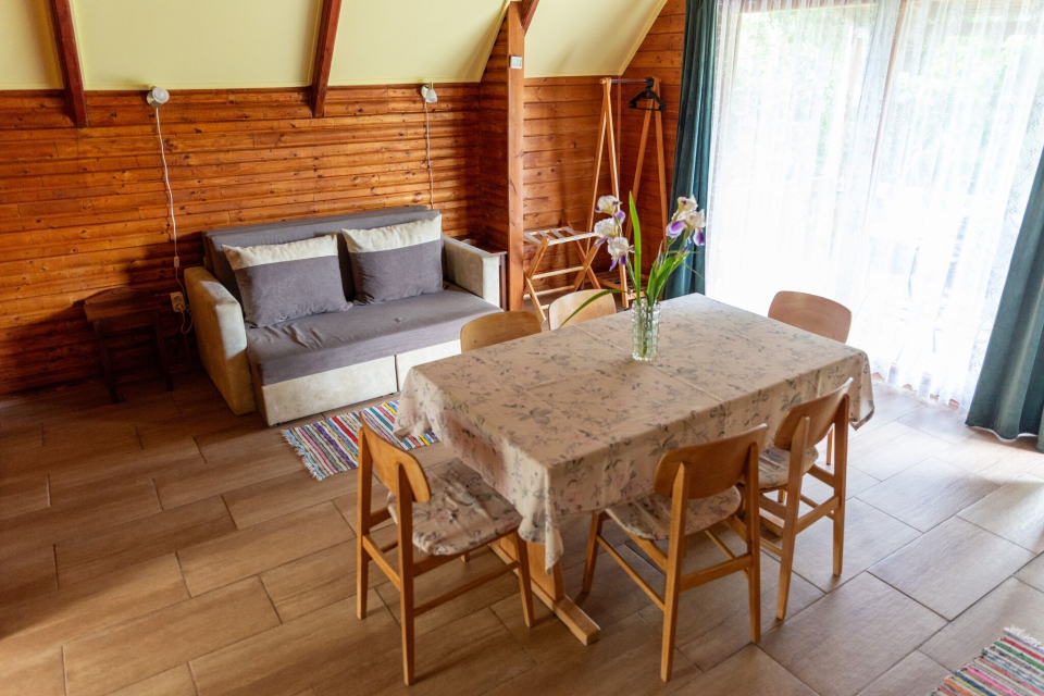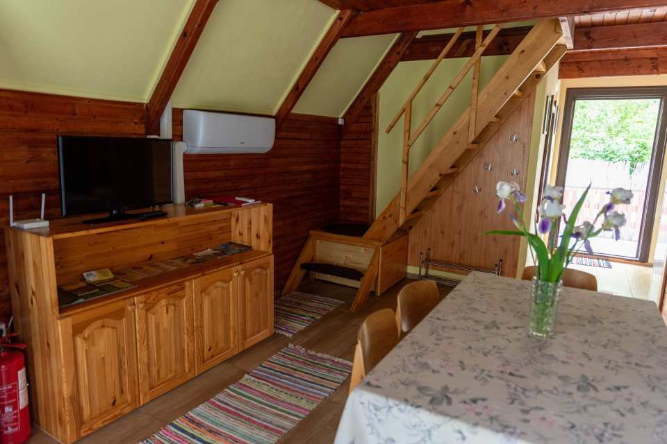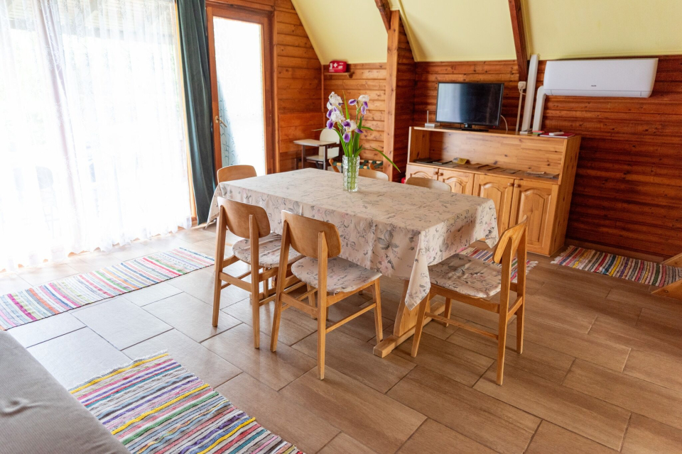 Vendégházunk 38 m2-es 5 fő elszállásolására alkalmas, önellátásra berendezett, a vendégek részére fenntartott faház.