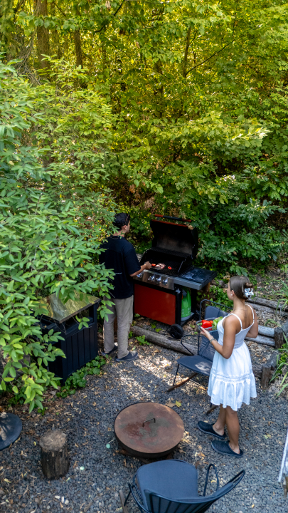 Fontos szempont volt számunkra, hogy az erdei környezetet összehangoljuk a minőséggel. Igy minden berendezés ízléses és minőségi legyen. Valamint , hogy alig kelljen magatokkal hozni valamit, számos minőségi bekészítéssel készülünk.