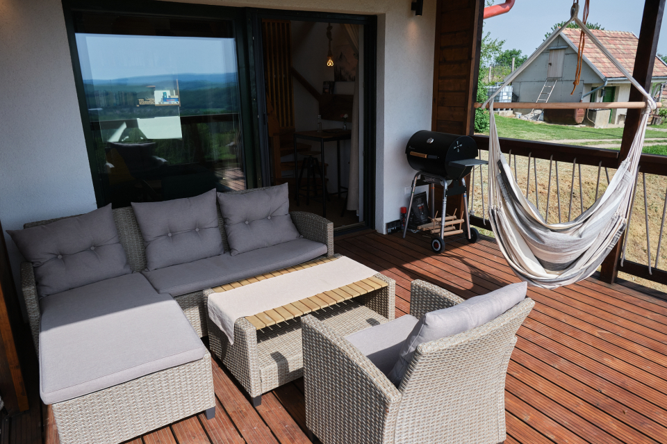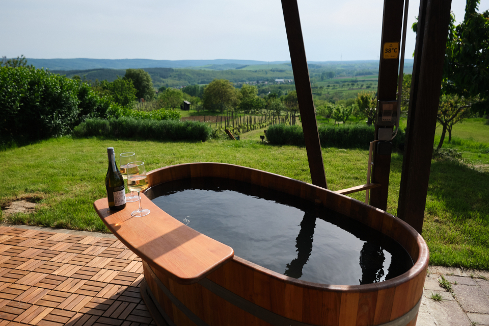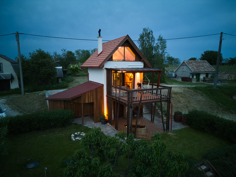 A Pajkos Présház ízig-vérig igazi „tinyhouse”, egy kedves kis házikó két fő részére, ami minden kényelmet megad amire egy néhány napos kuckózás során vágynátok. Fantasztikus bakonyi panorámával, melegvizes fürdődézsával, kandallóval és saját borospincével várunk titeket, ahol kedvetekre kortyolhattok a ház borából. Ez a mi ajándékunk Nektek 🙂