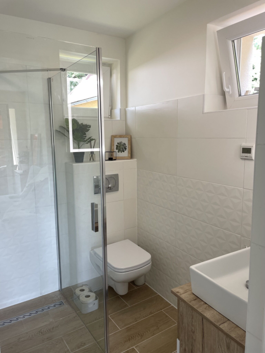 Nyáron medence és napozóterasz várja a vendégeket, a téli kényelemről és melegről pedig az elektromos fűtőpanelek, a klíma és a fürdőszobai padlófűtés gondoskodik. Az okostévén elérhető a Netflix.