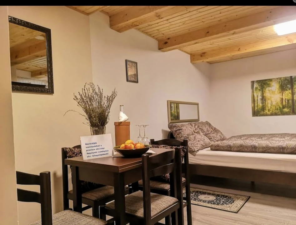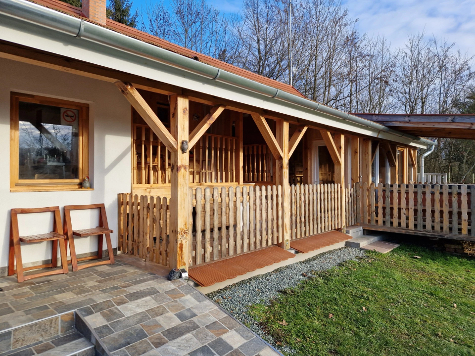 Vendégeinket két szoba várja, fürdővel, mellékhelyiséggel és konyhával. Nagy terasz, pihenésre alkalmas terek biztosítják a kényelmet. Az épület fűtése gáz! Infra- és padlófűtéssel,fütő-hűtő légkondicionáló is van. Allergiamentes környezet mindenki számára megfelelő komfortérzést biztosít. Vezetékes internet-hozzáférés (telekom), WIFI áll rendelkezésre.