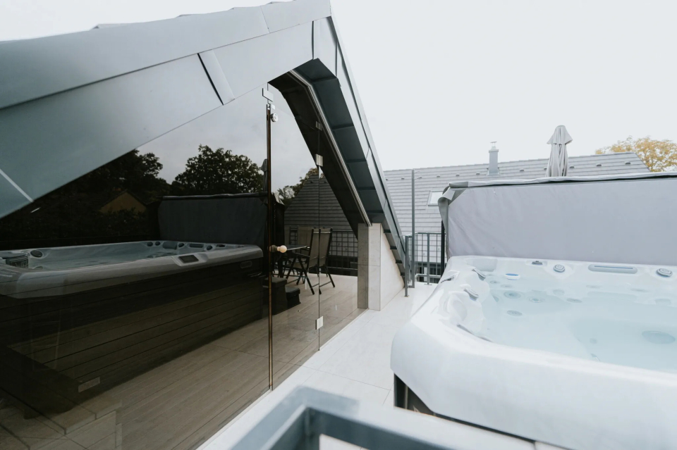 Vendégházunk egy 2000 m2-es füvesített kerttel vár, ahol bográcsozhatsz, grillezhetsz, vagy egyszerűen csak élvezheted a szabadban eltöltött időt. Ha pihennél, wellness szolgáltatásaink közül is választhatsz. Tetőtéri panorámás szaunával és jacuzziban pihenhetsz. Ahogy melegebbre fordul az idő, napozás után egy feszített víztükrű medencébe is csobbanhatsz. Az apartmanhoz zárt udvari parkolási lehetőség is tartozik, így autóddal teljes biztonságban lehetsz. Ha pedig elektromos autóval érkezel, nálunk fel is töltheted a járművedet.