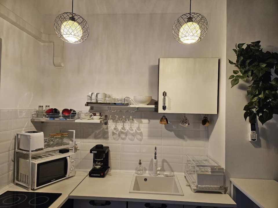 A szállás amerikai konyhás nappali, tágas hálószoba nagyméretű franciaággyal, valamint egy tágas fürdőszoba zuhanyzóval és bidével van ellátva.