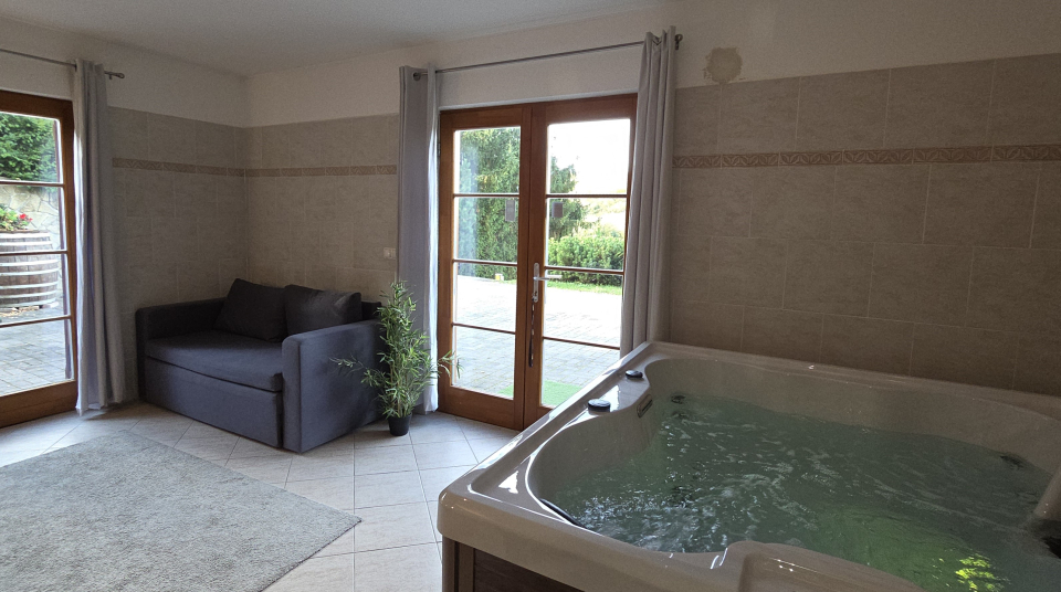 Májustól szeptemberig fűtött, kinti medence, a házban egész évben finn szauna és jakuzzi segíti a kikapcsolódást.