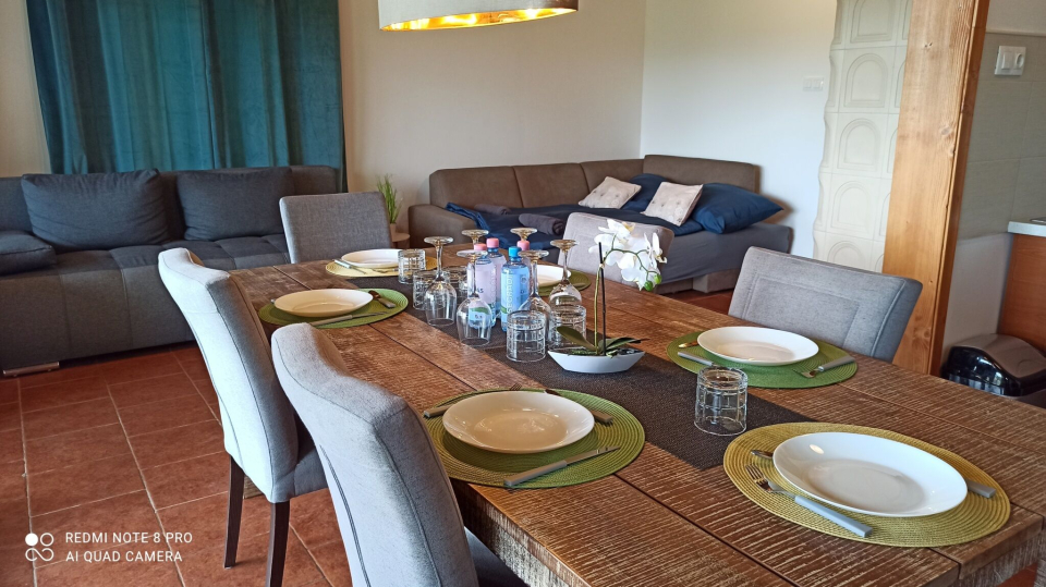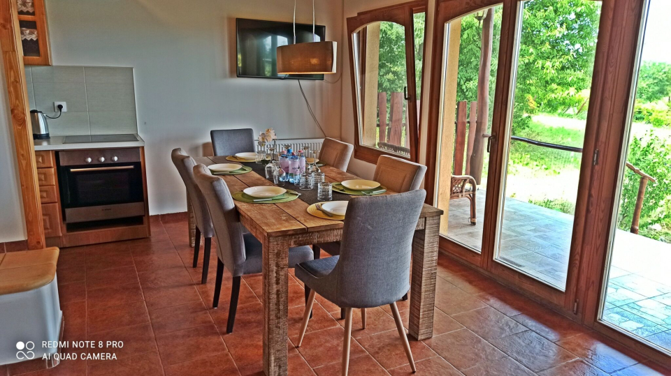 Ez a vendégházunk amerikai konyhával felszerelt nappalival és két hálószobával rendelkezik. Összesen 4-6 fő kényelmes befogadására alkalmas, de igény esetén akár 8 főre is pótágyazható.
