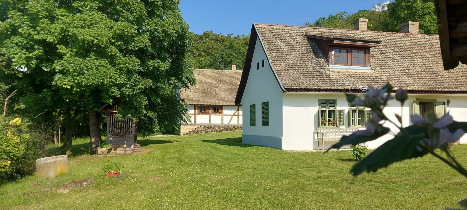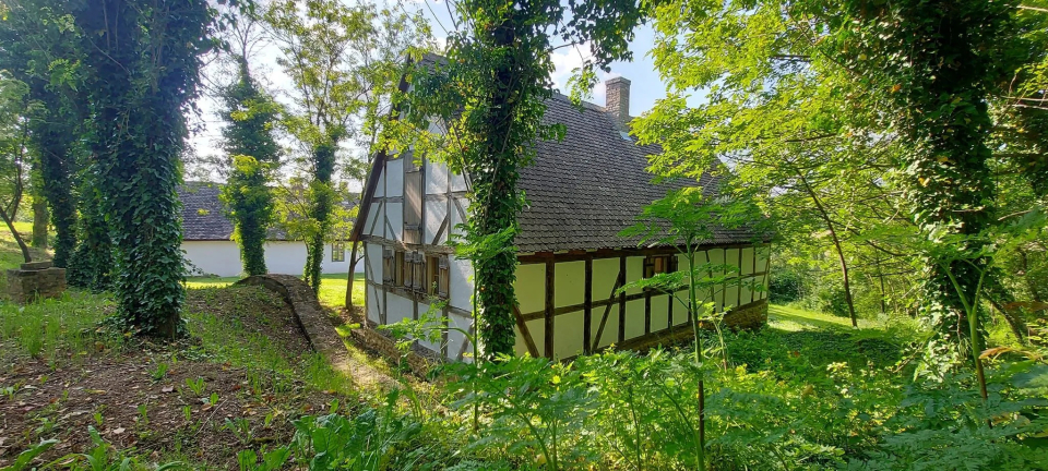 Házikónk közvetlen szomszédságában egy valódi ritkaság: az általunk fenntartott, újjáépített, kis néprajzi kiállítást rejtő Fachwerk-ház áll.